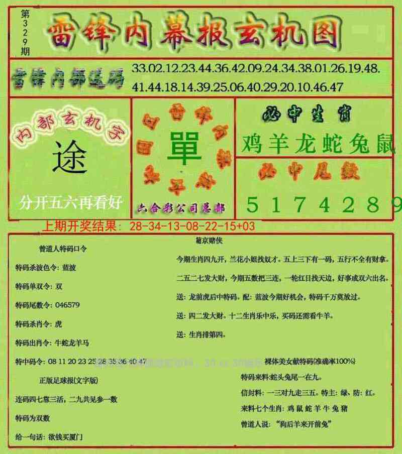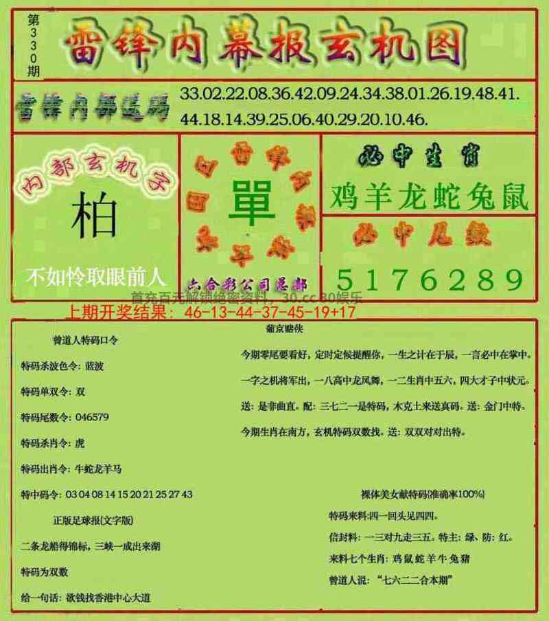 | 330期:家野中特→家禽:狗鸡猪羊←开:马36准 |