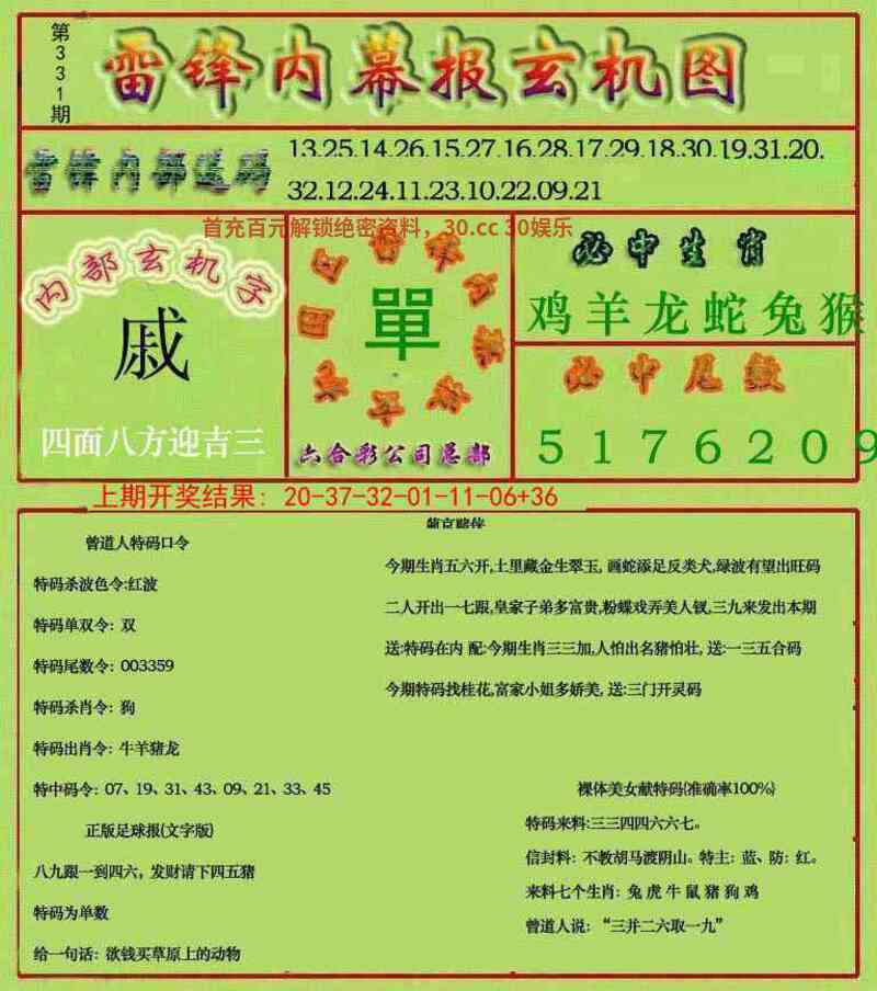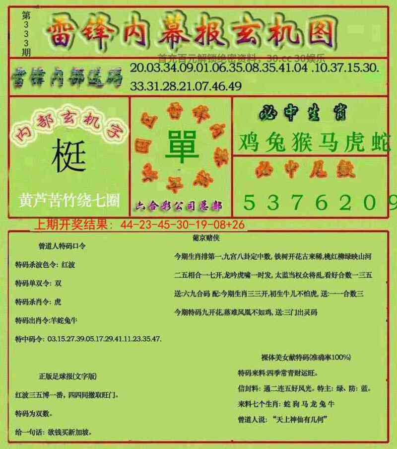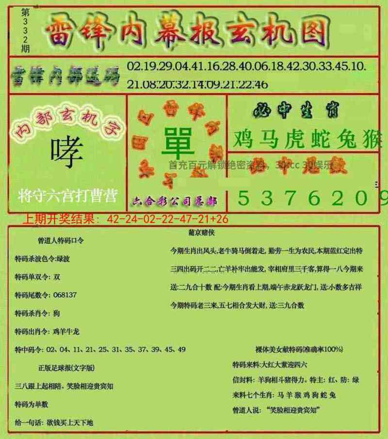 | 332期 | 鸡鼠马牛蛇猪 | 龙26错 |