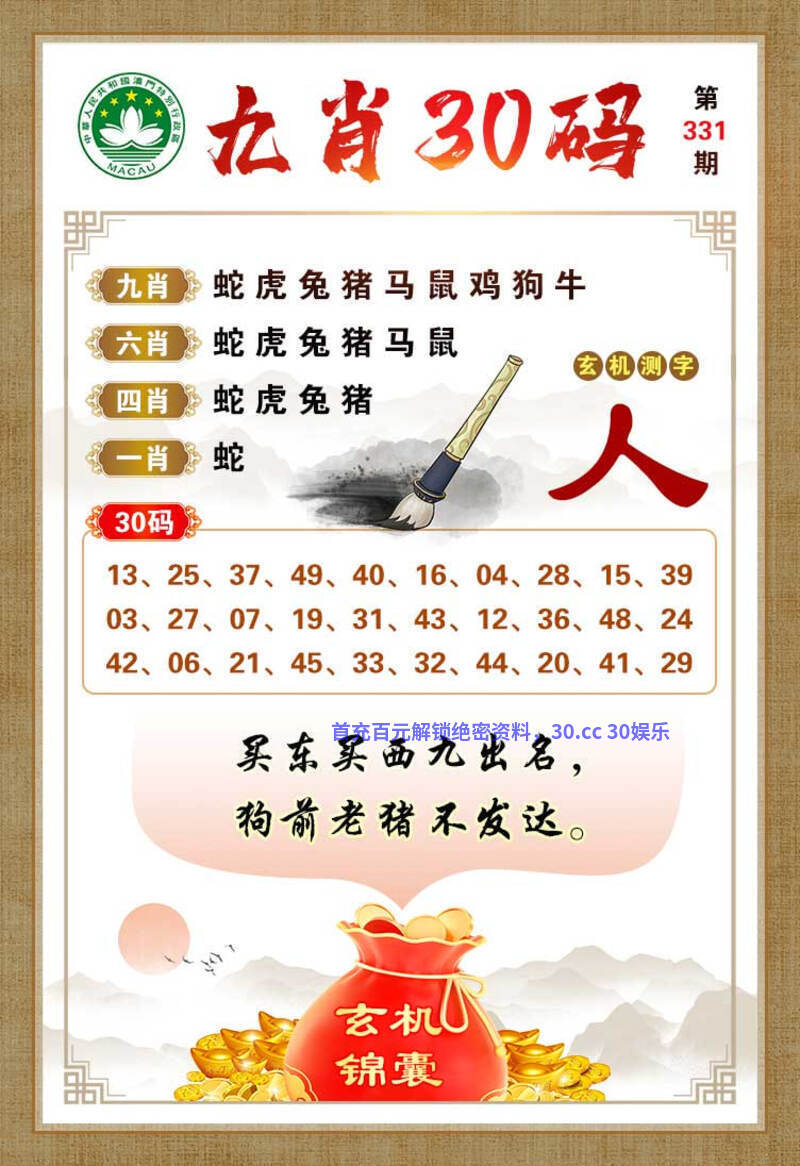 | 331期:单[蛇猪羊牛]双[虎狗马猴]开:龙26错 |